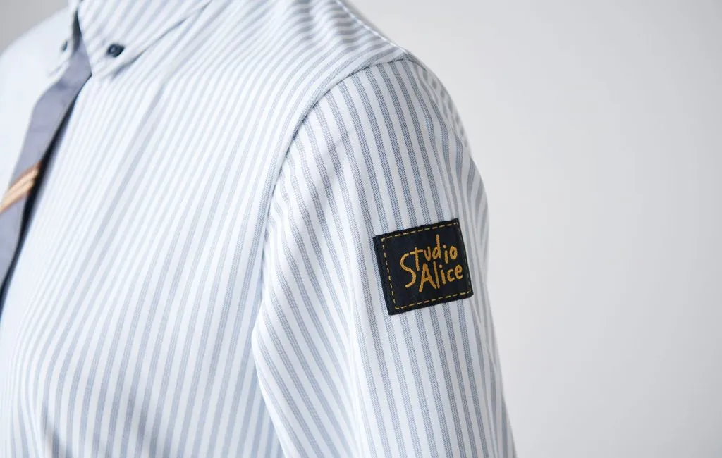 創業25周年とロゴ改訂を契機に、スタジオアリス様はユニフォームをリニューアル。狙いは「プロのカメラマンらしさ」を明確に表現し、企業イメージ転換を加速すること。店舗空間の世界観に調和する洗練されたモノトーンデザインを採用し、来店客に対しても信頼感とプロフェッショナリズムを印象づける装いに更新しました。