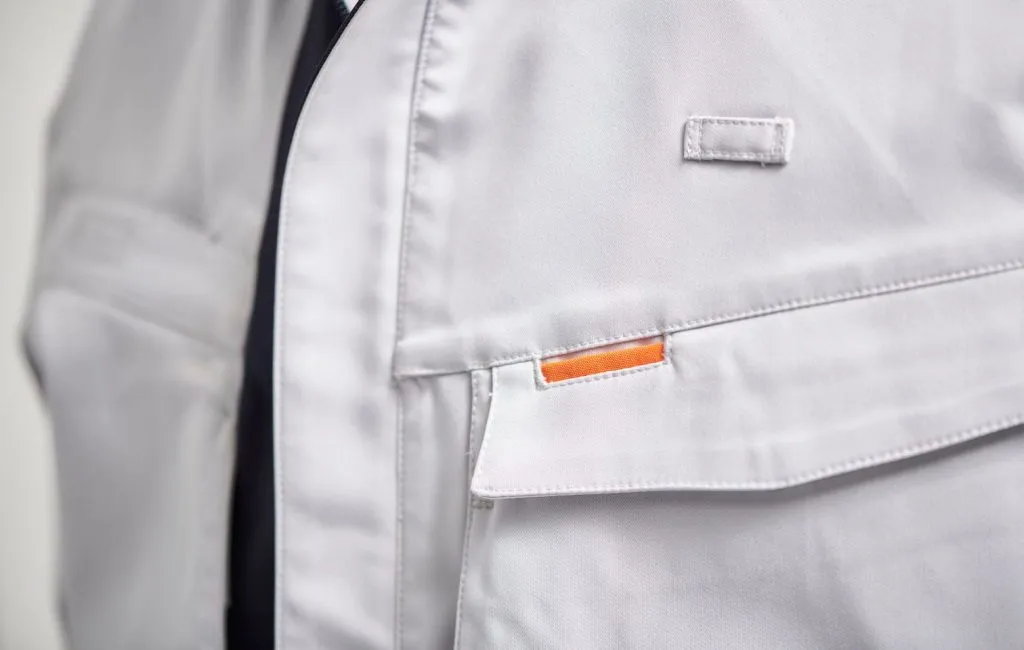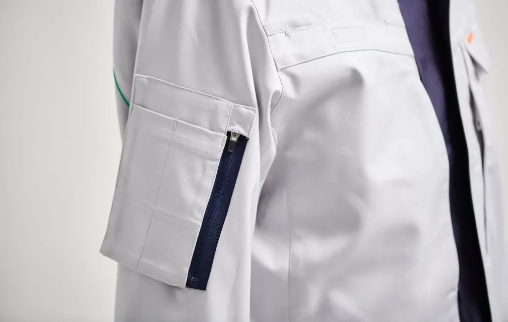 全国500超の作業所に対するヒアリングと、全社員アンケートを通じて要望を徹底的に収集。スマートフォンの落下を防止するファスナー付きポケット、袖下・股下の3Dカッティング、フルハーネス型墜落制止用器具に対応したポケット配置など、建設現場で求められる機能を細部まで具体化しました。世代・性別を問わず受け入れられるデザイン性と、建設現場における実用性を高いレベルで両立しています。
